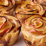 Repeat this process with all the strips until you have 6 beautiful apple roses. Place them inside the muffin cups of your prepared muffin tin and put them in the fridge while you preheat the oven.