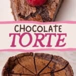 The torte doesn't need much to make it shine. I typically just dust it with powdered sugar or cocoa powder and serve it with fresh berries. But if you'd like, you can also serve with freshly whipped cream or some mascarpone cream.