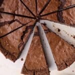 - Completely flourless: Many tortes use flour or ground almonds (almond flour), which gives a more brownie-like texture. Leaving them out keeps this version elegant, silky, and custardy.