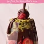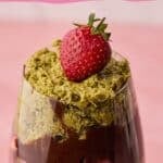 What it is: An easy, no-bake dessert. made with fresh strawberries layered with melted chocolate and a crunchy, sweet-and-salty pistachio filling.