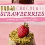 Dubai chocolate strawberries are an easy dessert inspired by the viral Dubai chocolate bar. The sweet, crunchy pistachio filling is layered with fresh strawberries and melted chocolate for a seriously indulgent alternative to chocolate-covered strawberries.
