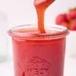 Whether you need a sauce to drizzle over a dessert, or a fresh glaze to sweeten up your breakfast, this delicious strawberry glaze is great to have on the go - in the fridge or in the freezer! It's a sticky, sweet, and shiny topping that's bursting with real strawberry flavor.