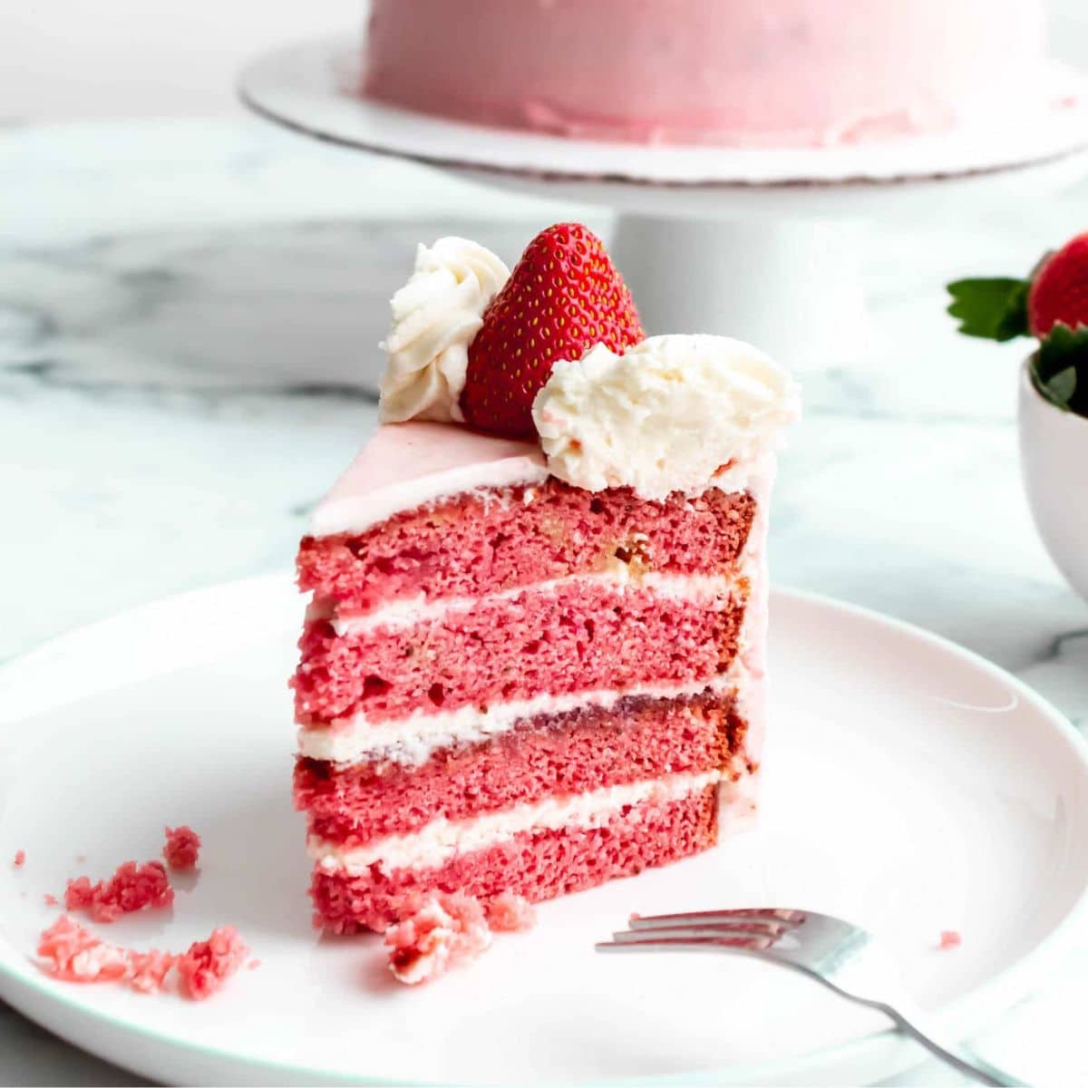 Allow to cool completely before frosting with Cream Cheese Frosting and decorating with fresh strawberries.